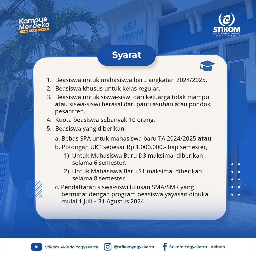 - Pengumuman diterima sebagai mahasiswa STIKOM Yogyakarta